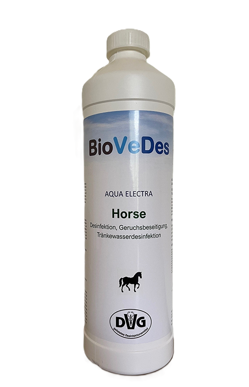 BioVeDes AQUA ELECTRA “Horse” ist die sanfte, aber hochwirksame Lösung für Hygiene und Gesundheit in der Tierpflege. Die enthaltene Hypochlorsäure bietet starke antibakterielle, antivirale und antimykotische Wirkung – ideal für den Einsatz bei allen Haustieren und in der Tierzucht.